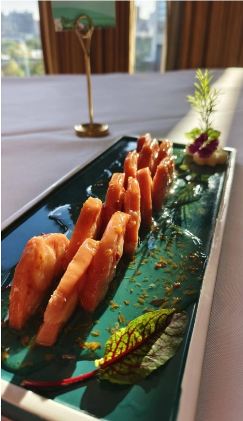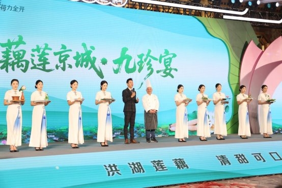 在“藕蓮京城?九珍宴”互動環節,洪湖藕湯、香煎藕夾、御膳藕丸、桂花蜜藕、清炒藕帶、炕蒸藕餅、冰心玉蓮、芝麻藕條、荷塘三寶,九道美食依次登場,讓大家品嘗到“舌尖上的洪湖”,每一份美食,都凝聚著洪湖蓮藕的獨特魅力。九道菜,既有家常的溫暖,又有創意的巧思,每一道都是洪湖蓮藕與楚菜匠心的完美碰撞。